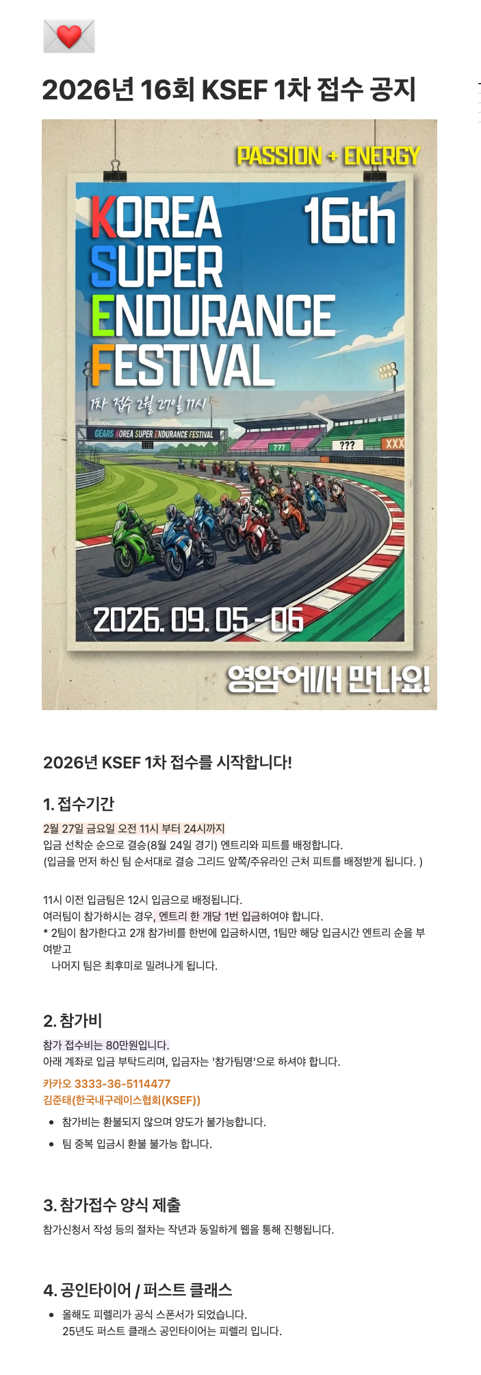 2026년 16회 KSEF 7시간 내구페스티발 1차 접수안내